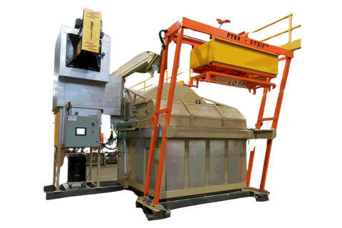 With the PYRO-STRIP™ Tank System, the abrasive action of fluidized sand joins extreme temperatures to clean your hooks and racks in record time economically! Fluidized sand cleaning is the method of choice for its economical and ecological excellence. The equipment being fabricated is a proven technology with safe and simple operation, and robust construction required for hard working paint lines. Steel, iron and bronze parts can be stripped, as well as aluminum for recycling. Invigorating hot sand bath vaporizes paint, powder coatings and crusty ash residue in 1/6 the time of conventional burn-off furnaces, without the post cleaning clean-up.